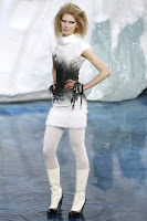 And of course to Yves Saint Laurent, my favourite of all. This season was as good as any other. Simple and classy, just how I like it. Some of it very nunlike but sexy with the hood like hats and chains on the waist. Hmm.. something for the churches to roll their eyes on. And like always, there is no color in the collection. Mostly blacks, whites and shades of grey, which Stefano said before that winter is never for colors. You feel down and moody except for those electric blue shoes - fab.That's all for Paris since it was long gone and I have writers block at hand to continue. On to photos of some of my favorites this season.
